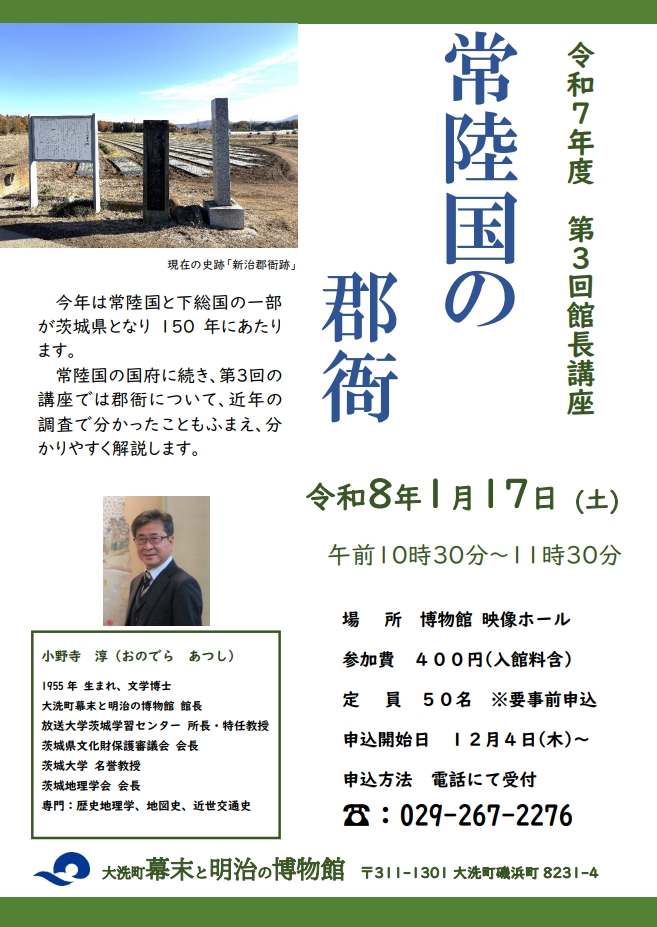 令和6年1月より大洗町幕末と明治の博物館の公式Xの運用を開始いたしました。